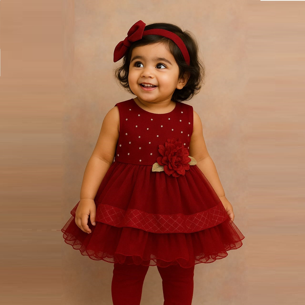 Girl Frock With Trouser and Matching Hair Band & Big Flower
